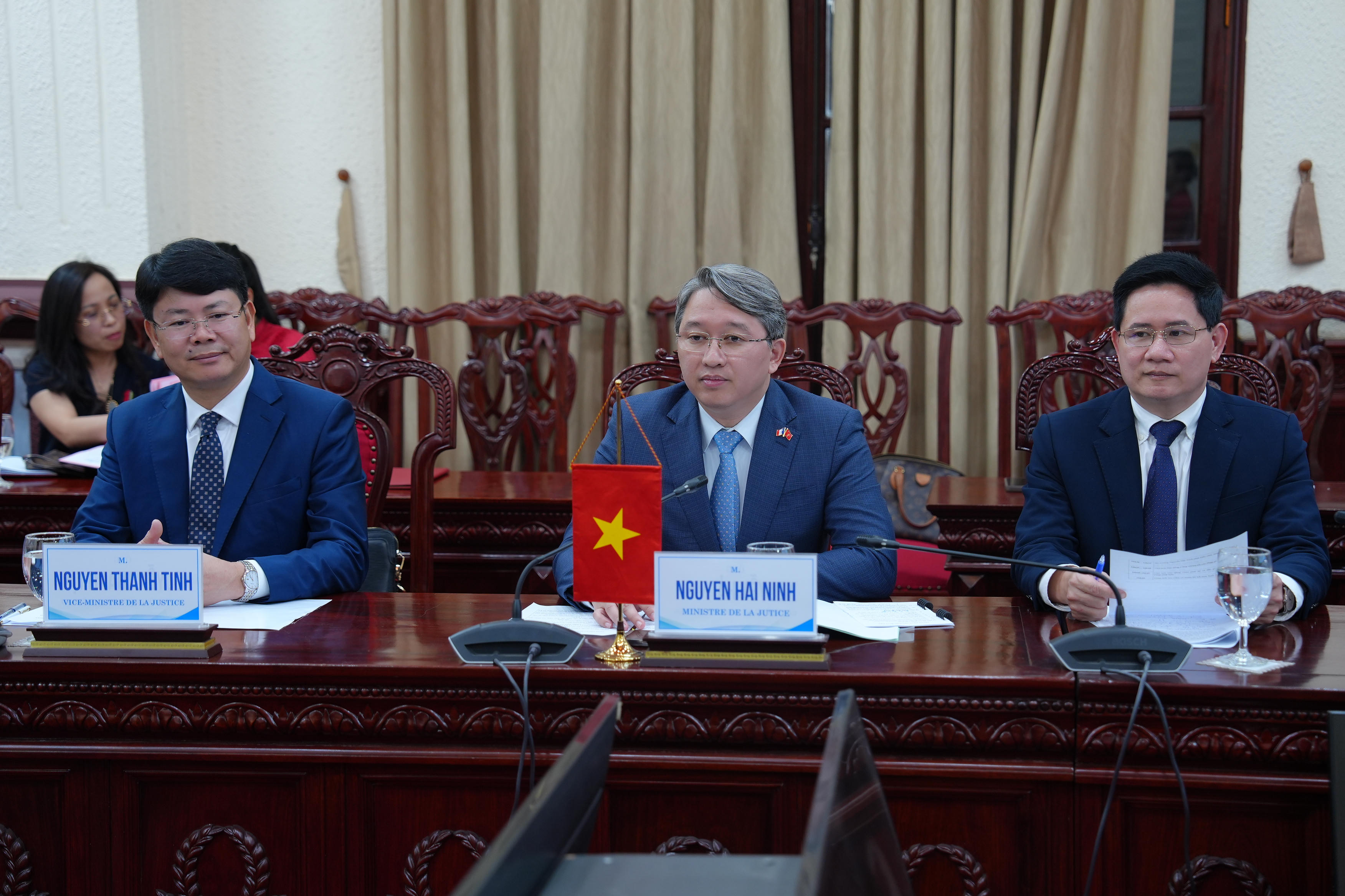 Ngay sau buổi tiếp xã giao, Bộ trưởng Tư pháp Việt Nam Nguyễn Hải Ninh đã cùng Chủ tịch Hội đồng Công chứng tối cao Pháp ký Thỏa thuận hợp tác giữa Bộ Tư pháp nước CHXHCN Việt Nam và Hội đồng Công chứng tối cao Pháp; cùng với Chủ tịch Hội đồng Thừa phát lại và đấu giá viên quốc gia Pháp ký Kế hoạch hợp tác giai đoạn 2026-2027 giữa Bộ Tư pháp nước CHXHCN Việt Nam và Hội đồng Thừa phát lại và đấu giá viên quốc gia Pháp.
