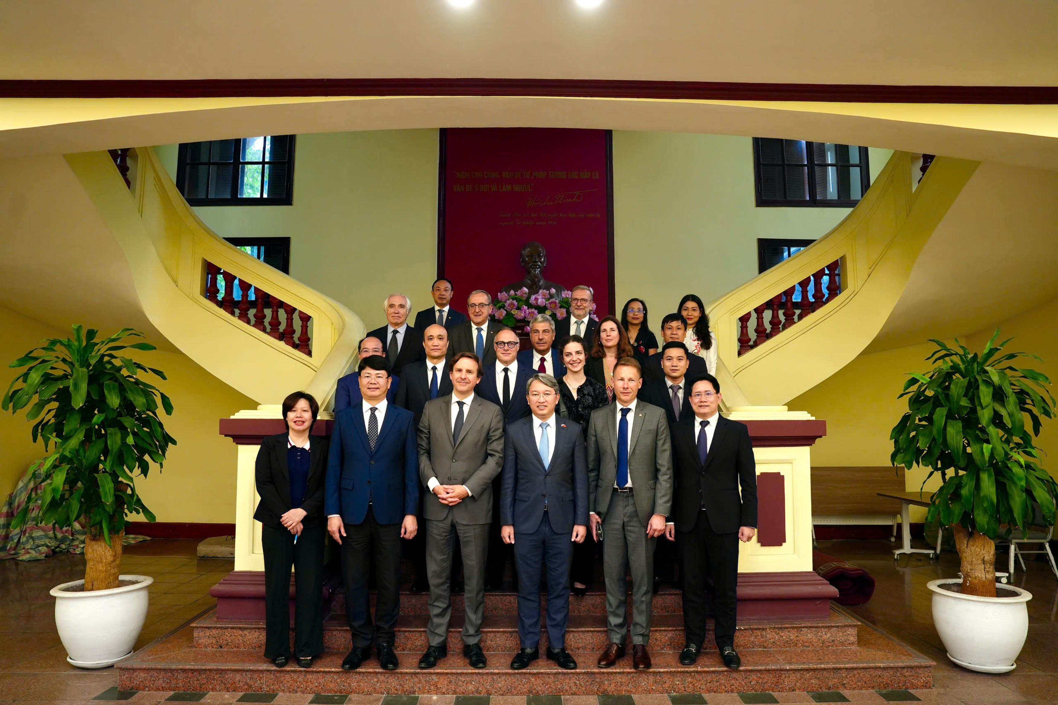 Bộ trưởng Tư pháp Việt Nam Nguyễn Hải Ninh, Thứ trưởng Nguyễn Thanh Tịnh chụp ảnh lưu niệm cùng đoàn công tác |