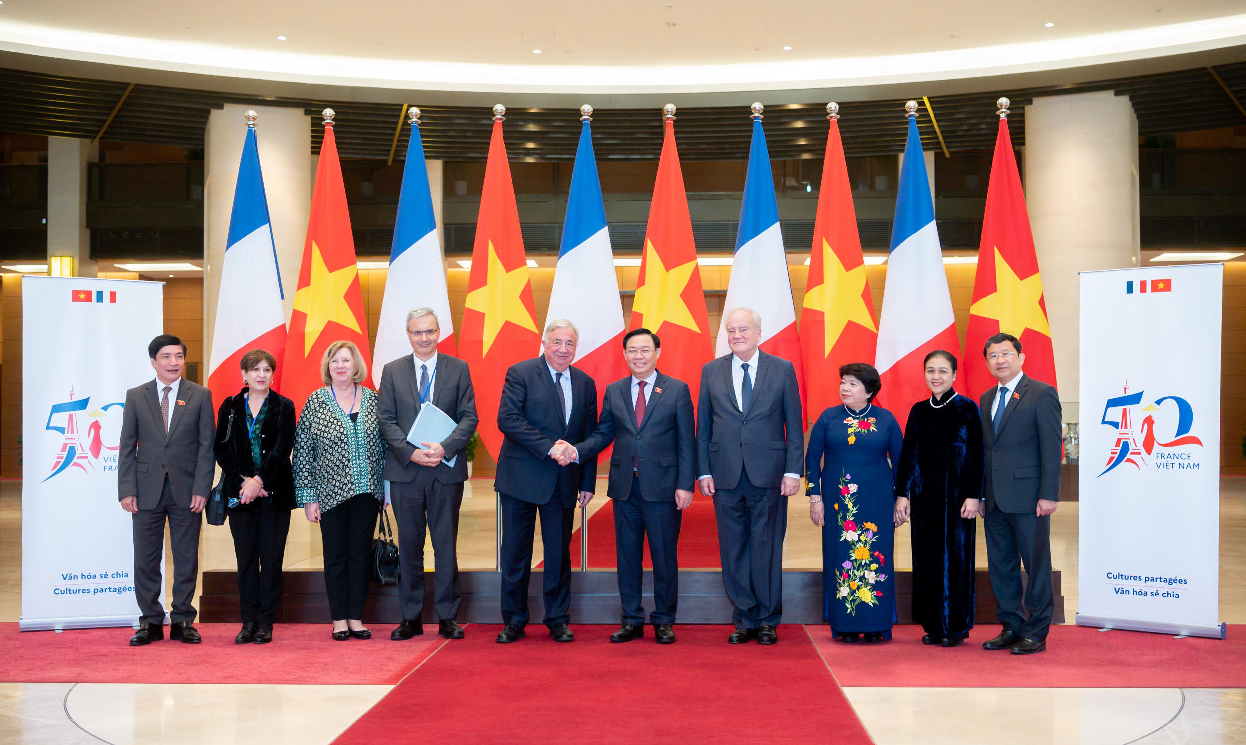 Chia sẻ với các ý kiến của Chủ tịch Thượng viện và Đoàn, Chủ tịch QH Vương Đình Huệ khẳng định Việt Nam luôn coi trọng quan hệ với Pháp - một trong những cường quốc hàng đầu ở Châu Âu và có vai trò quan trọng ở khu vực và trên trường quốc tế. Việt Nam mong muốn làm sâu sắc, thực chất hơn quan hệ Đối tác chiến lược Việt - Pháp cả trên kênh chính đảng, ngoại giao nghị viện, Chính phủ và đặc biệt là giao lưu văn hóa, giao lưu nhân dân.