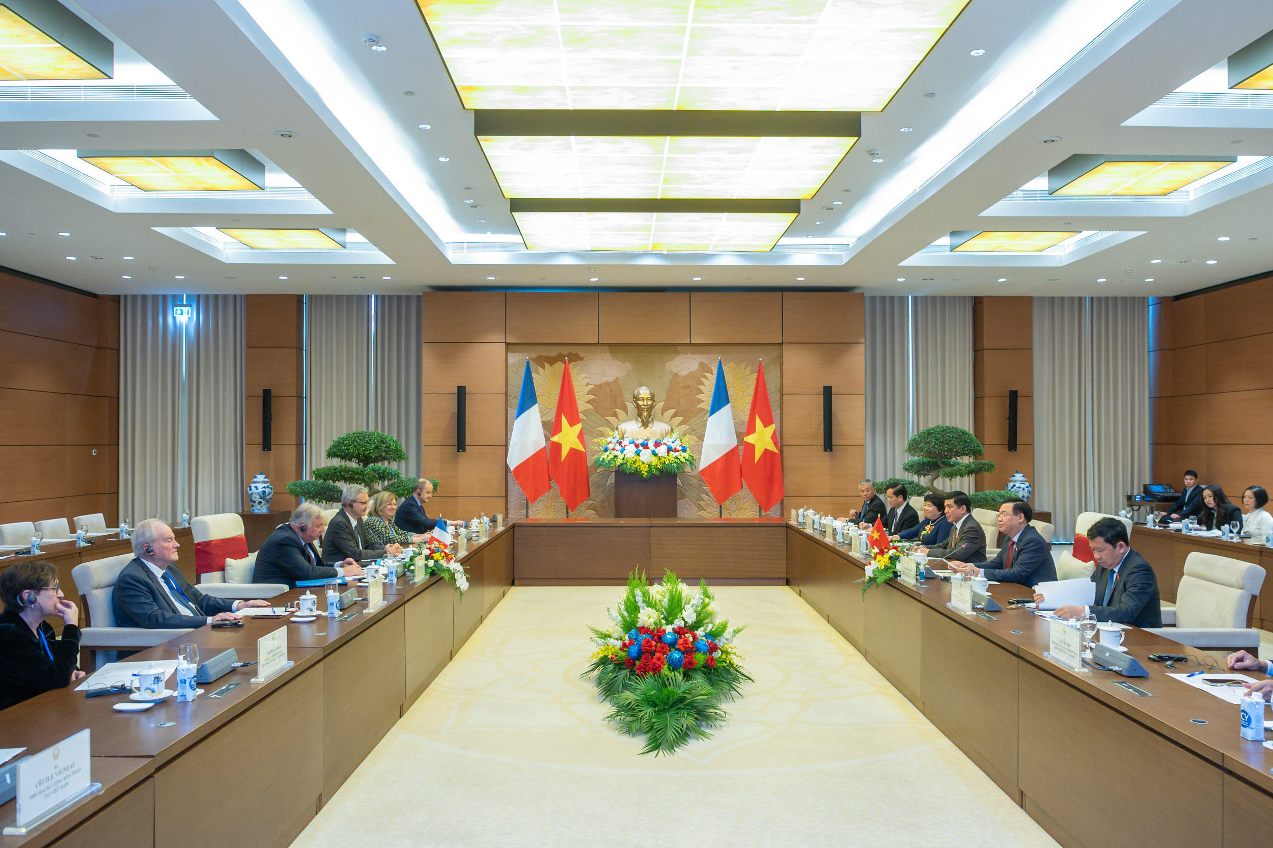 Việt Nam mong muốn thắt chặt và tăng cường hơn nữa quan hệ hữu nghị hợp tác giữa QH Việt Nam với lưỡng viện Pháp; tăng cường trao đổi, chia sẻ kinh nghiệm ở các cấp, giữa các Ủy ban chuyên môn của hai cơ quan lập pháp, hai Nhóm nghị sỹ hữu nghị ở mỗi nước, Nhóm Nữ nghị sĩ, Nhóm Nghị sỹ trẻ. Chia sẻ QH Việt Nam đang xem xét sửa đổi Luật Khám bệnh, chữa bệnh; Luật Dược; dự kiến xem xét sửa đổi Luật Bảo hiểm y tế và xây dựng mới Luật về trang thiết bị y tế, Chủ tịch QH mong muốn phía Thượng viện Pháp quan tâm hỗ trợ, chia sẻ kinh nghiệm với Việt Nam về những vấn đề này.