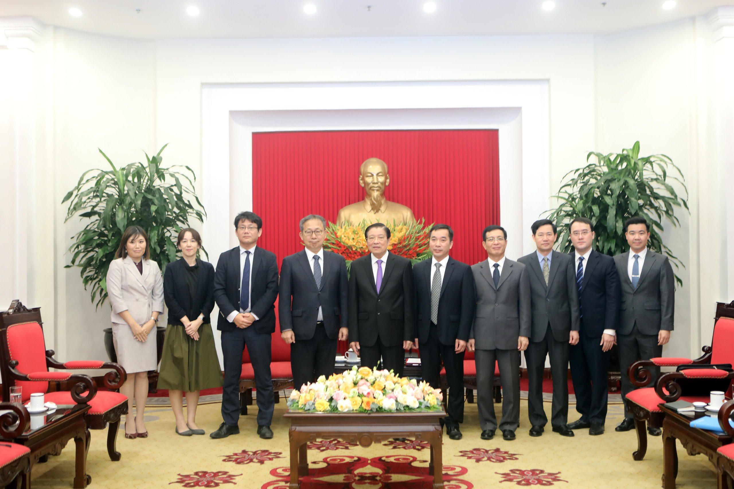 Trưởng Ban Nội chính Trung ương cảm ơn Đại sứ Nhật Bản và JICA trong thời gian vừa qua đã chủ động phối hợp với các cơ quan và địa phương của Việt Nam xây dựng, kết nối và thúc đẩy nhiều dự án hợp tác về đầu tư, nhất là trong việc thực hiện 3 đột phá chiến lược của Việt Nam, gồm: Hoàn thiện đồng bộ thể chế, phát triển nguồn nhân lực chất lượng cao và xây dựng hệ thống kết cấu hạ tầng; đơn giản hóa thủ tục cấp thị thực vào Nhật Bản cho công dân Việt Nam; cải thiện môi trường kinh doanh; giáo dục và văn hóa; pháp luật và tư pháp…