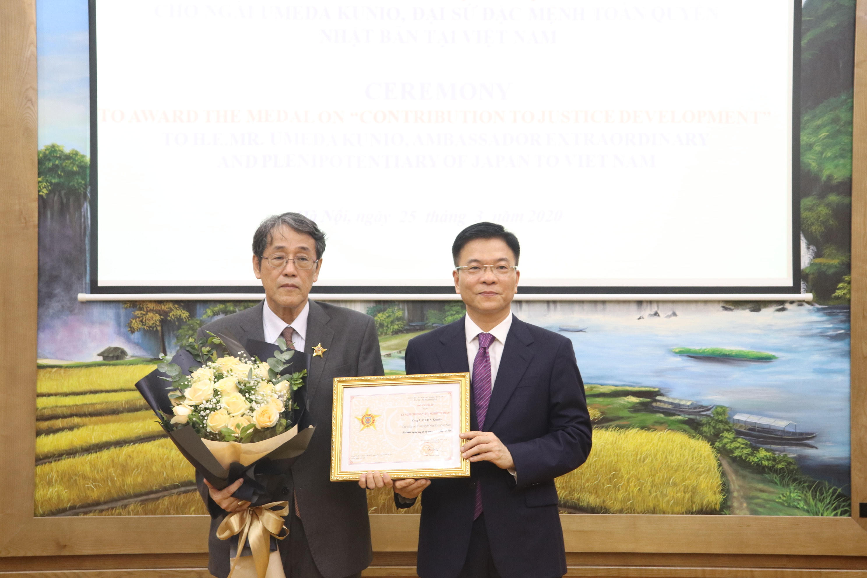 Nhân dịp này, Bộ trưởng Lê Thành Long đã tặng Kỷ niệm chương “Vì sự nghiệp tư pháp” cho ông Umeda Kunio vì đã có nhiều công lao, đóng góp cho sự phát triển của ngành Tư pháp Việt Nam.