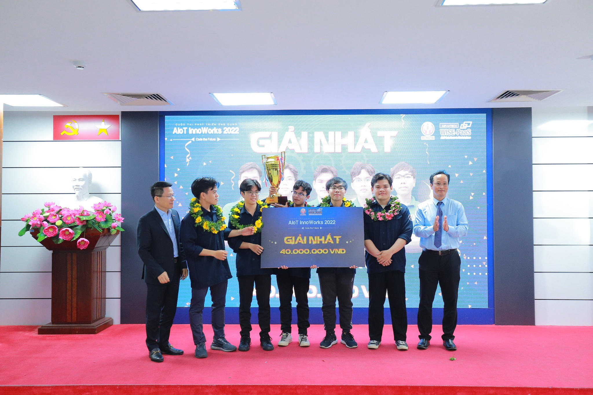AI Gang Gang nhận Cúp và phần thưởng dành cho đội chiến thắng tại AIoT InnoWorks 2022 |