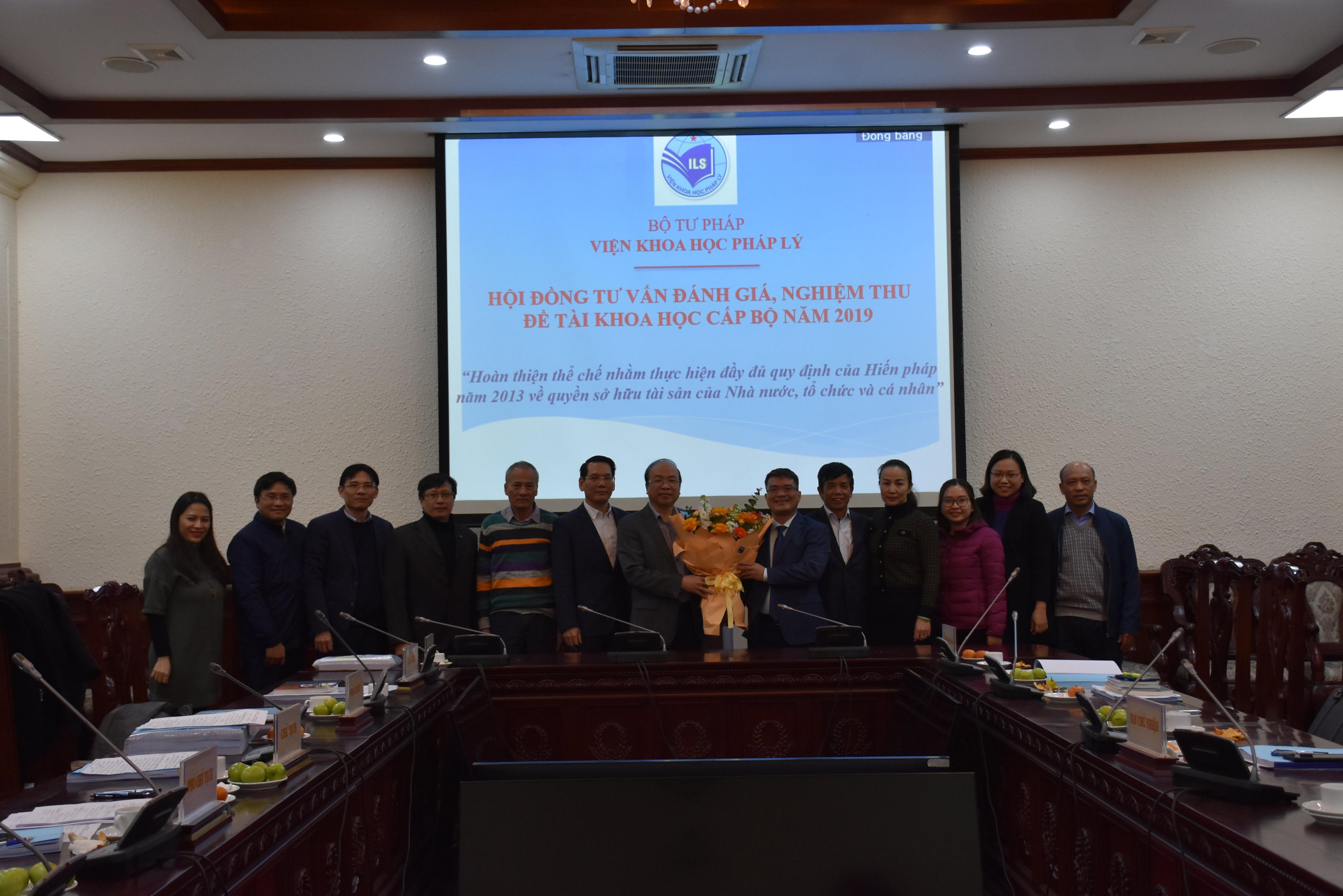 Báo cáo tại Hội đồng, Vụ trưởng Vụ Pháp luật dân sự-kinh tế Nguyễn Thanh Tú, Chủ nhiệm đề tài cho biết, mục tiêu của đề tài nhằm phân tích toàn diện, giải thích các nguyên tắc hiến định của Hiến pháp 2013 về Quyền sở hữu tài sản và yêu cầu đặt ra đối với việc hoàn thiện pháp luật gắn với tổ chức thi hành pháp luật trong bối cảnh Cách mạng công nghiệp 4.0. Đánh giá bất cập, hạn chế trong việc tiếp cận nguyên lý, lý luận, xây dựng pháp luật và thực thi pháp luật về Quyền sở hữu tài sản, đặc biệt là các loại tài sản mới, phi truyền thống, từ đó đề xuất giải pháp hoàn thiện.