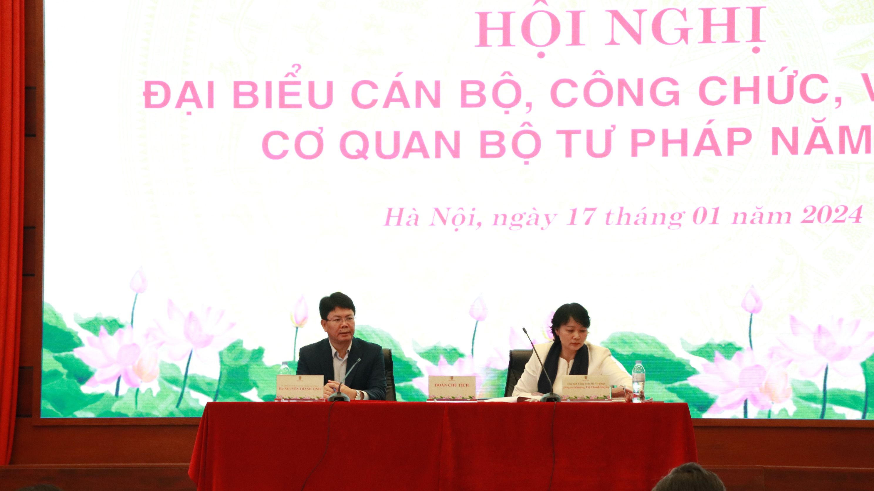Tại Hội nghị, các đại biểu đã được nghe báo cáo tình hình kinh phí hoạt động năm 2023; báo cáo kết quả thanh tra, kiểm tra, giải quyết khiếu nại, tố cáo đối với công chức, viên chức các đơn vị thuộc Bộ Tư pháp năm 2023; báo cáo về kết quả công tác cán bộ của Bộ Tư pháp năm 2023; báo cáo công tác đời sống của cán bộ, công chức, viên chức, người lao động của Công đoàn Bộ Tư pháp năm 2023; báo cáo kết quả hoạt động của Ban Thanh tra nhân dân cơ quan Bộ Tư pháp năm 2023.