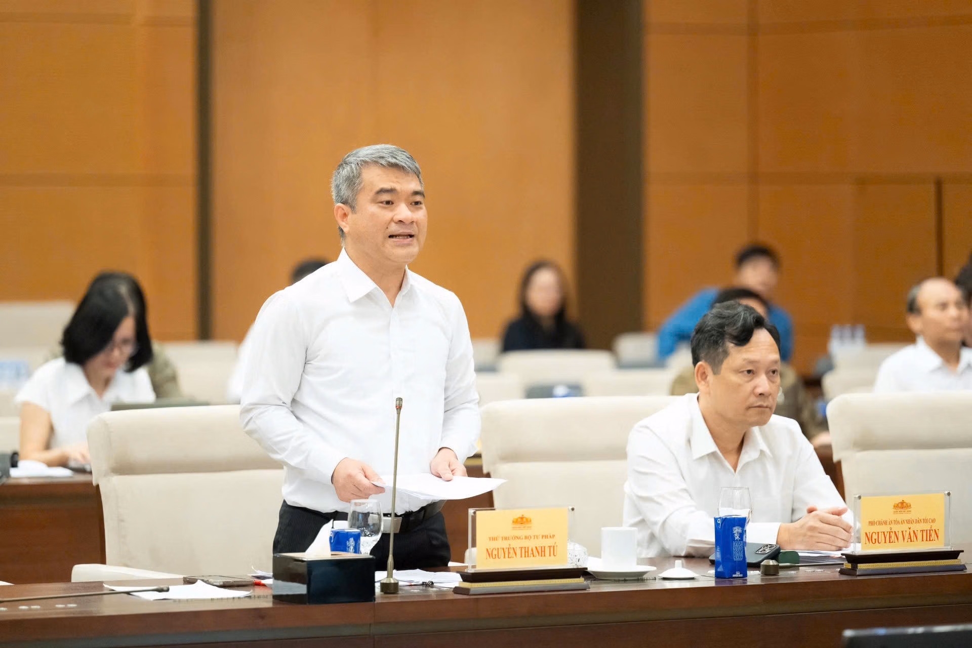 Trình bày dự thảo Tờ trình, Thứ trưởng Bộ Tư pháp Nguyễn Thanh Tú nhấn mạnh, việc ban hành Nghị quyết tạo cơ sở pháp lý cho việc thực hiện thí điểm chế định luật sư công, trên cơ sở kết quả thí điểm có thể thực hiện chính thức chế định luật sư công trong Nhà nước pháp quyền xã hội chủ nghĩa Việt Nam, nhằm nâng cao hiệu quả trong việc bảo vệ quyền và lợi ích hợp pháp của cơ quan nhà nước, cơ quan, tổ chức thuộc hệ thống chính trị, quyền và lợi ích hợp pháp của Nhà nước trong doanh nghiệp nhà nước, đáp ứng yêu cầu của cải cách tư pháp và cuộc cách mạng về sắp xếp, tinh gọn tổ chức bộ máy của hệ thống chính trị.