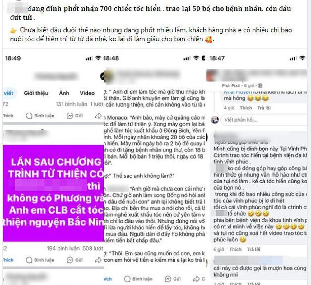 Kèm theo đó là thông tin cho rằng salon tóc 1900 đã trao tặng 50 bộ tóc giả cho bệnh nhân ung thư ở Bắc Ninh và nhận về 700 bộ tóc mới do người dân địa phương hiến tặng.