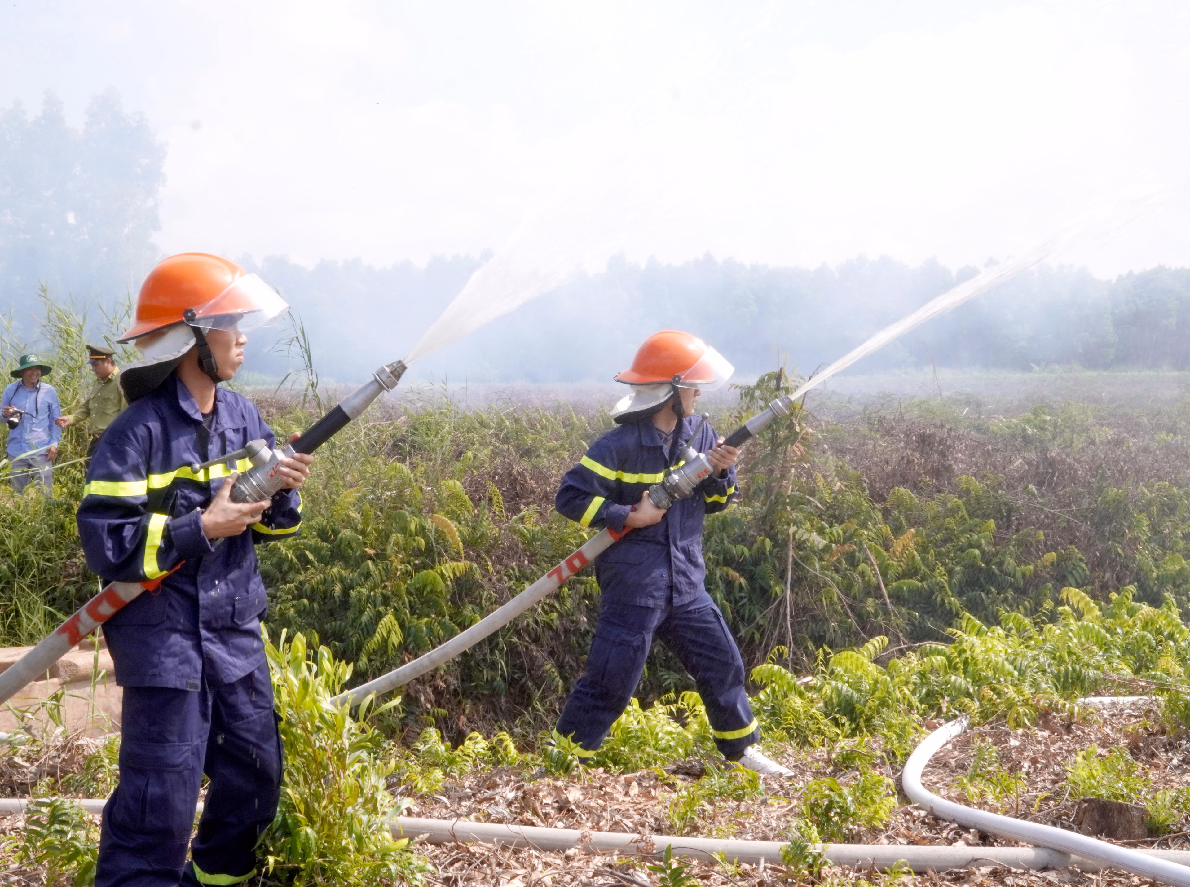 Về phương tiện, lực lượng tham gia được trang bị 5 tổ máy chữa cháy đường thủy, mỗi tổ gồm vỏ composite dài 9,2 m kết hợp máy bơm công suất lớn, bảo đảm khả năng cơ động nhanh trên hệ thống kênh rạch. Cùng với đó là 2 xe chữa cháy chuyên dụng của lực lượng Cảnh sát PCCC, 1 xe bán tải của Hạt Kiểm lâm và 12 máy Icom cầm tay phục vụ thông tin liên lạc...