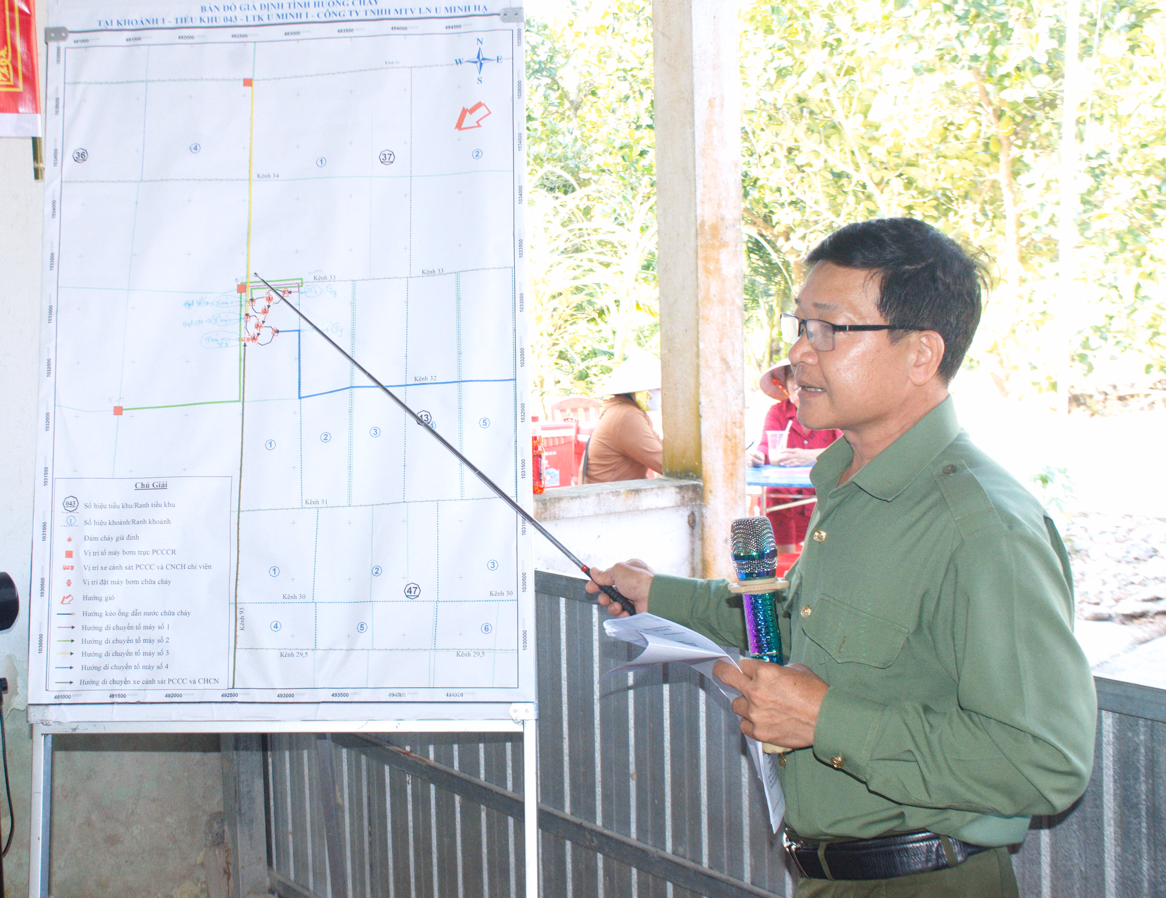 Ông Trần Ngọc Thảo - Chủ tịch kiêm Giám đốc Công ty TNHH MTV Lâm nghiệp U Minh Hạ, cho biết: “Cuộc thực tập nhằm nâng cao năng lực chỉ huy, điều hành chữa cháy rừng tại cơ sở, đồng thời tăng cường khả năng hiệp đồng giữa các lực lượng trong xử lý tình huống khẩn cấp. Đây cũng là dịp kiểm tra khả năng huy động lực lượng, phương tiện theo phương châm “4 tại chỗ”, “5 sẵn sàng”, góp phần nâng cao kỹ năng xử lý tình huống và tinh thần trách nhiệm của lực lượng làm nhiệm vụ PCCCR”.