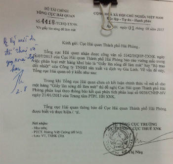 Sáu năm sau Cục hải quan Hải Phòng lại ra quyết định ấn định mặt hàng này vào chương 48, truy thu lại thuế của những mặt hàng mà họ đã đã điều chỉnh giảm 6 năm trước đó. Việc truy thu này, chẳng khác nào đẩy doanh nghiệp vào bước đường cùng, khi thời điểm DN đang phải đối mặt với những khó khăn.