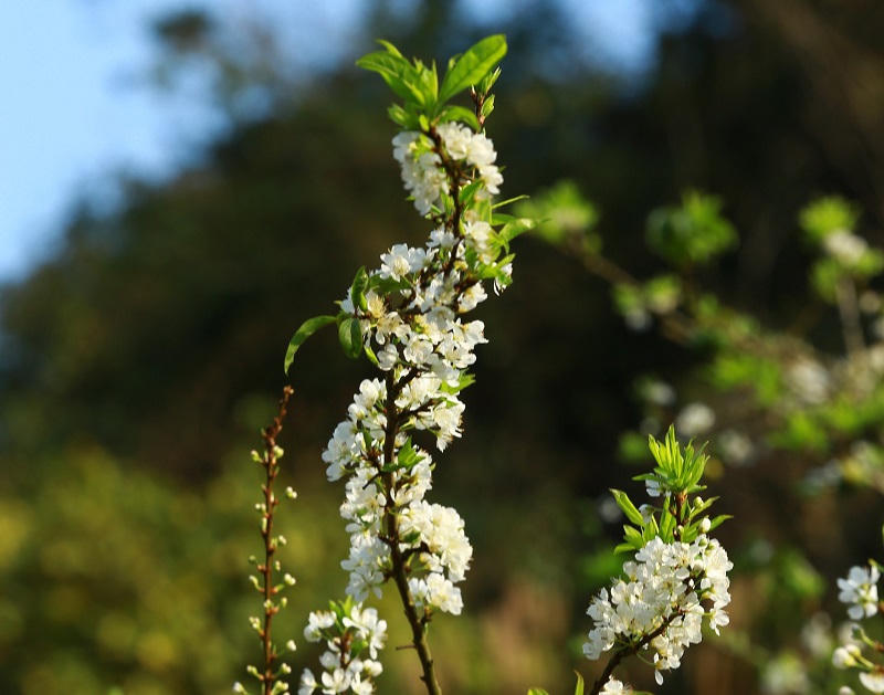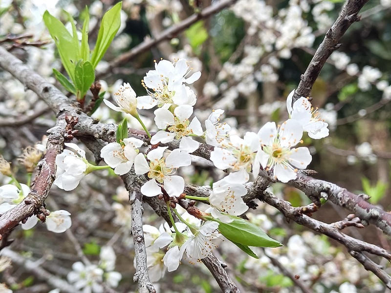 Những cành hoa mận bung nở trắng xoá như bông tuyết.