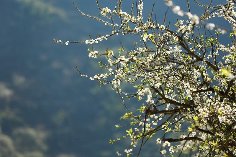 Những bông hoa mận nở trắng tinh khôi ở thung lũng Mu Náu.