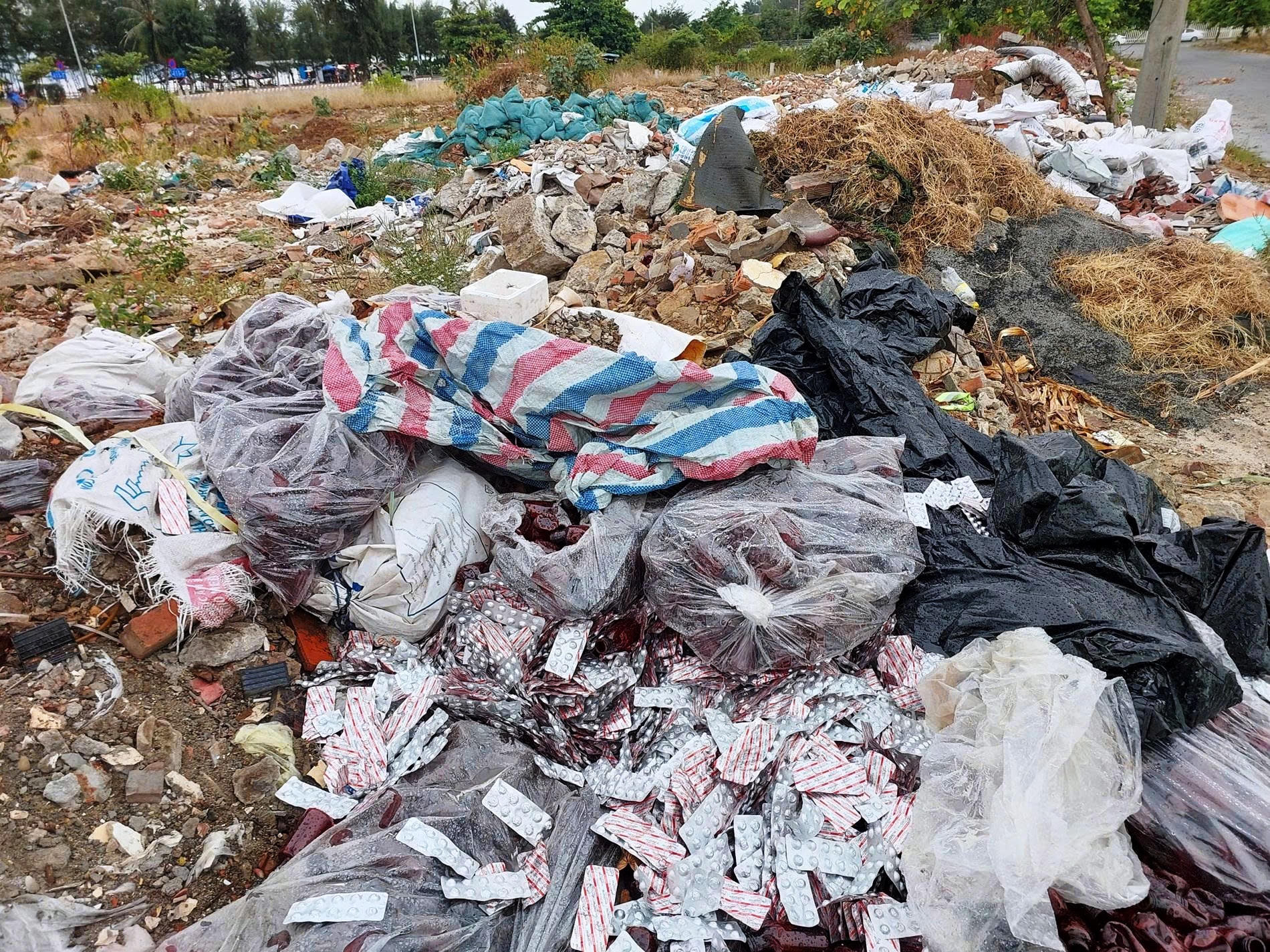 Số thuốc tây bị ném bên vệ đường. |