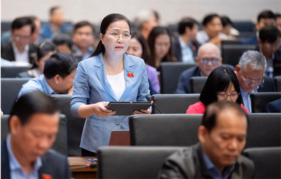 Đại biểu Đỗ Thị Lan - Phó Chủ nhiệm Ủy ban Văn hóa và Xã hội, Đoàn đại biểu Quốc hội tỉnh Quảng Ninh. Ảnh: P.V.