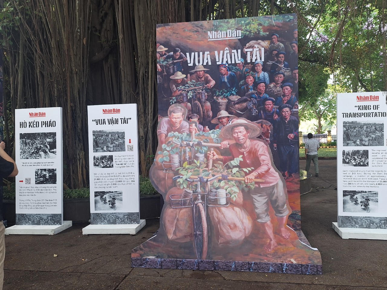 Tại triển lãm, khách tham quan có thể chiêm ngưỡng bức tranh bao quanh hình tròn đường kính 5,5m, chiều cao hơn 3m và trải nghiệm công nghệ thực tế tăng cường với mô hình tranh panorama 360 độ. Ngoài ra, khách tham quan còn có thể chụp ảnh với những pano, mô hình “Vua vận tải”, “Hò kéo pháo” để được sống với những ngày tháng hào hùng của dân tộc.