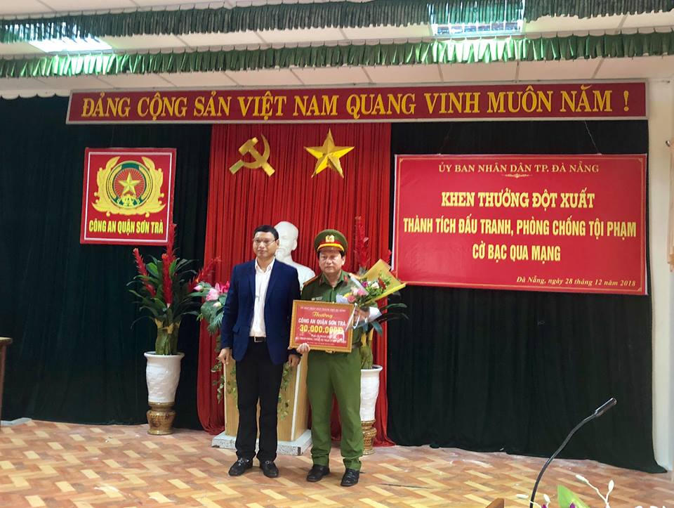 Với thành tích xuất sắc khám phá đường dây đánh bạc lớn qua mạng do các đối tượng người nước ngoài tổ chức này, trước đó, tập thể Công an quận Sơn Trà đã được Chủ tịch UBND quận Sơn Trà Trần Thị Thanh Tâm biểu dương và thưởng nóng 20 triệu đồng; Đội An ninh Công an quận được trao thưởng 10 triệu đồng. 3 cá nhân cũng được khen thưởng dịp này gồm: Thiếu úy Nguyễn Hữu Huỳnh, Thiếu úy Hồ Đắc Len (Công an quận Sơn Trà), ông Trương Tấn Thịnh, cán bộ Công ty Quốc Đô, Đà Nẵng.