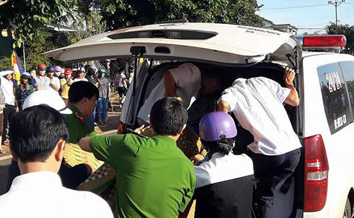 Lực lượng chức năng chuyển các nạn nhân đi cấp cứu. Ảnh:Nhật Hạ. |