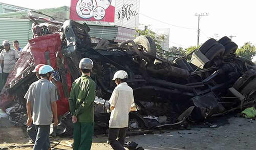 Tai nạn khiến hai đầu xe nát đầu. Trong đó, ôtô khách quay ngược lại, xe tải lật ngang. 10 người tử vong tại chỗ, hàng chục người bị thương.