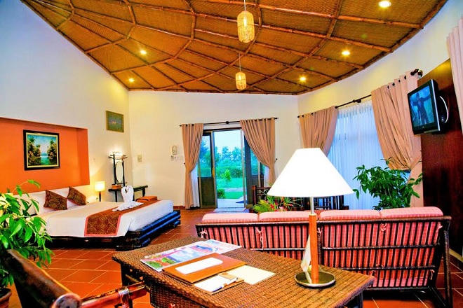 Đặt chân tới Vietstar Resort & Spa, điều đầu tiên hấp dẫn du khách chính là những Pavilion ngói đỏ chen giữa các tán cây xanh rì.