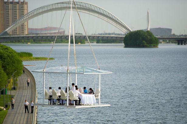 Có vẻ như càng ngày càng nhiều người thích trải nghiệm "cảm giác mạnh" với con đường ẩm thực khi khách sạn Lujiazui ở Thượng Hải treo bàn ăn lên ở độ cao 50 mét tháng 6 năm ngoái.