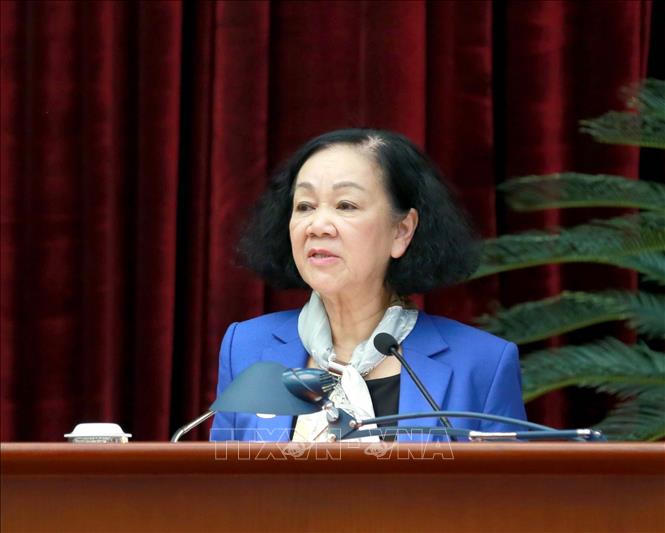 Đồng chí Trương Thị Mai, Uỷ viên Bộ Chính trị, Thường trực Ban Bí thư, Trưởng Ban Tổ chức Trung ương phát biểu. Ảnh: Phương Hoa/TTXVN