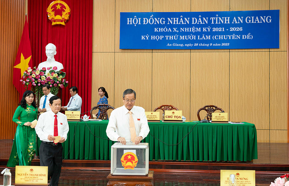 Các đại biểu bỏ phiếu bầu bổ sung chức danh Ủy viên UBND tỉnh An Giang, nhiệm kỳ 2021-2026 |