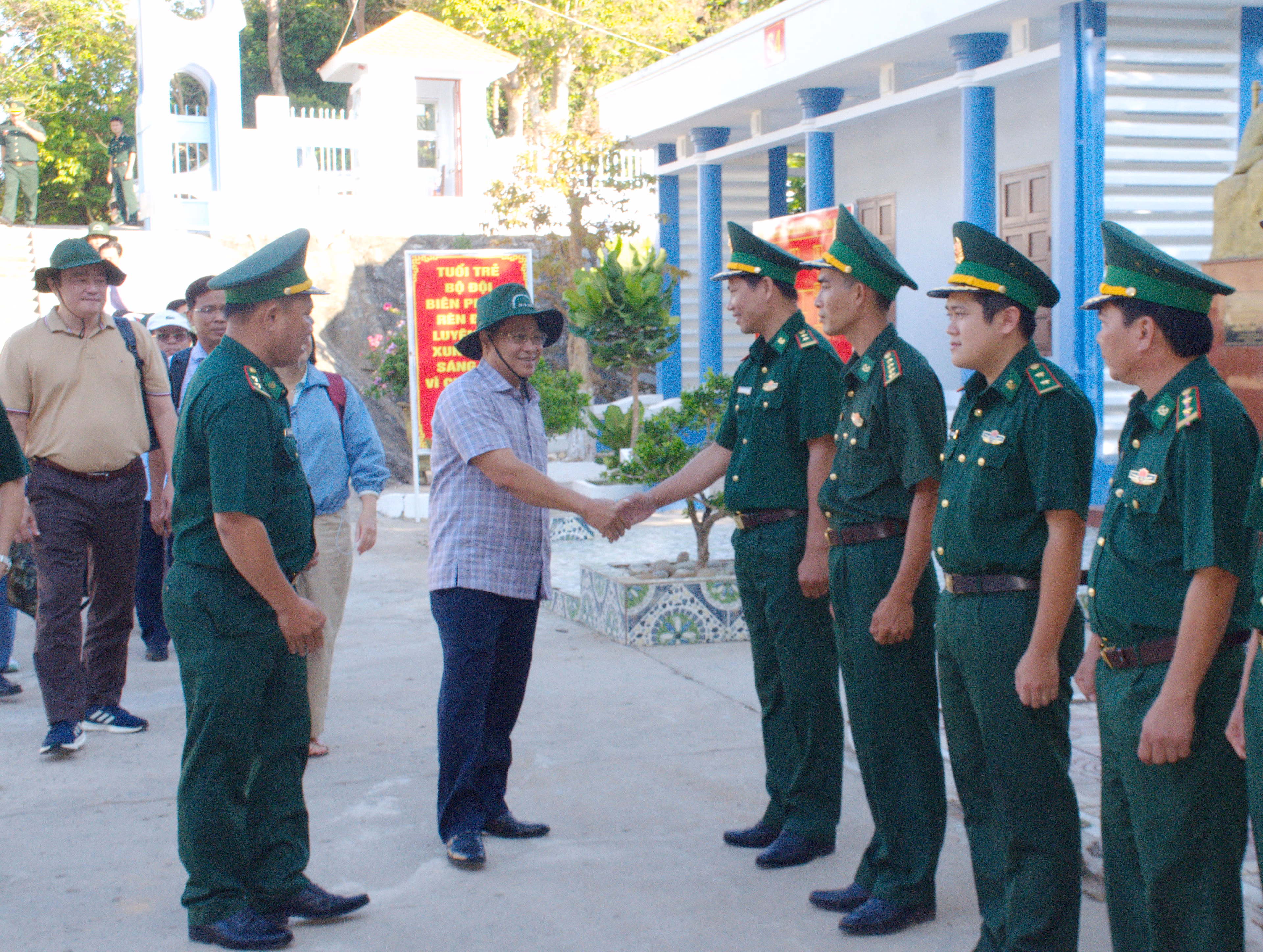 Trong khuôn khổ chuyến công tác, Đoàn đã đến thăm, làm việc với các lực lượng đang làm nhiệm vụ trên đảo, gồm Đồn Biên phòng Hòn Khoai, Trạm Ra đa 595, Trạm Hải đăng Hòn Khoai và lực lượng Hạt Kiểm lâm cụm đảo Hòn Khoai.