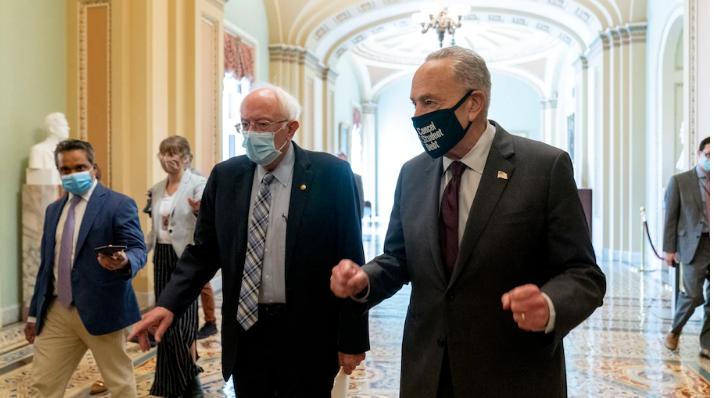 Thượng nghị sĩ Bernie Sanders (tóc trắng) là người khởi thảo kế hoạch ngân sách 3,5 nghìn tỷ đô la. |