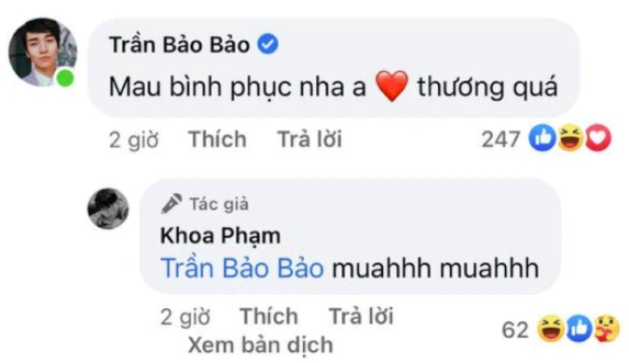 Sáng 5/4, bên dưới hình ảnh mới nhất chụp lại đôi chân đang được bó bột của Karik, rất nhiều bạn bè và dàn rapper đã liên tục để lại bình luận động viên chàng ca sĩ. Đáng chú ý, Binz còn hài hước mắng "yêu" Karik là "Ngốc lắm", đính kèm một biểu tượng thể hiện sự giận dữ. Động thái này chứng tỏ Binz đã phải lo lắng cho sức khoẻ của người bạn mình lắm.