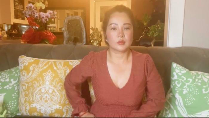 Thúy Nga xuất hiện trên livestream để chia sẻ sự việc. (Ảnh: Cắt từ clip) |