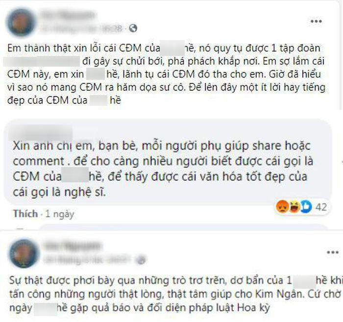 Trước những lời tố ấy, Thúy Nga trần tình: “Những video làm về Kim Ngân thì mẹ và em gái của chị ấy rất thích xem, ngày nào Nga không làm clip họ còn buồn nữa đó, nhất là em gái Kim Ngân. Tự nhiên giờ có anh nhận là em họ Kim Ngân lên phản biện và nói Nga đủ thứ. Tánh của người này rất hơn thua, dùng lời lẽ nặng nề với Thúy Nga. Sau này Nga mới biết người này chửi Nga thậm tệ trên Facebook.”
