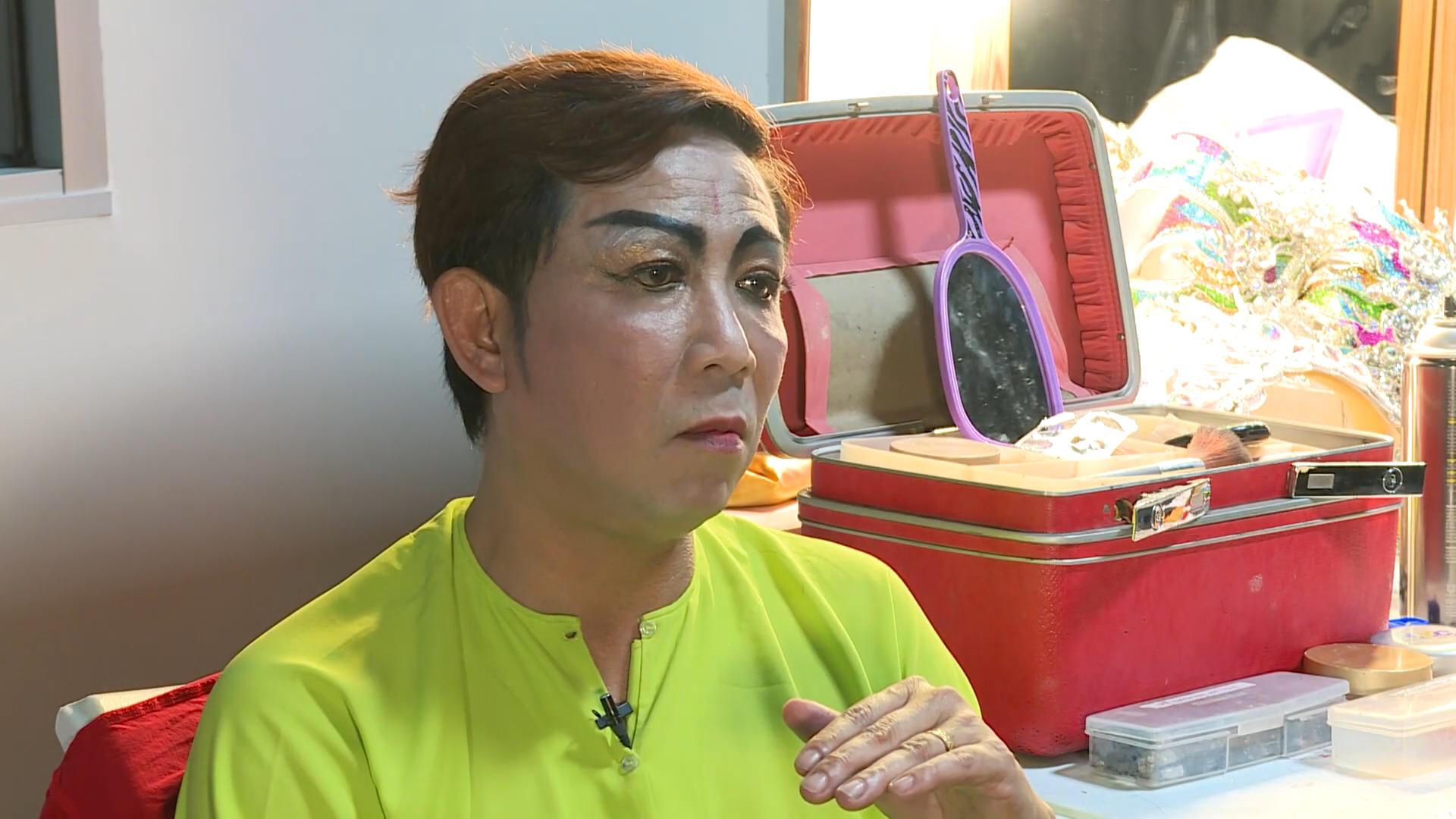 Gặp gỡ Thuý Nga trong chương trình tại nơi anh đang chuẩn bị cho vở diễn cải lương, với trang phục lộng lẫy và gương mặt đậm phấn son đặc trưng, nghệ sĩ Lê Tín lần đầu tiết lộ về quá trình mưu sinh và theo đuổi nghệ thuật.