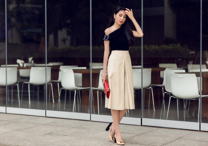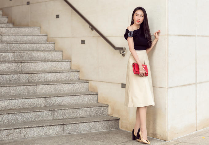 Nữ ca sĩ tạo điểm nhấn bằng các mẫu túi hàng hiệu đắt giá. Bà xã Công Vinh phối từng set đồ với những chiếc túi xách hàng hiệu của Louis Vuitton, Chanel…