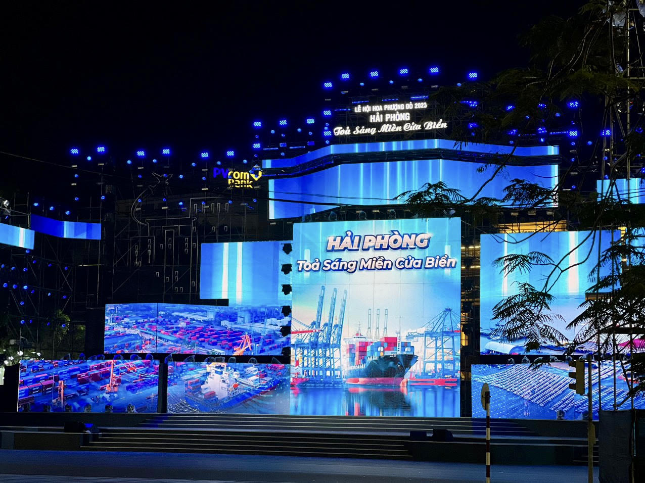 Sân khấu chương trình được sử dụng nhiều khối màn hình lớn để tạo hiệu ứng thị giác choáng ngợp, tôn vinh vẻ đẹp thành phố Cảng. |