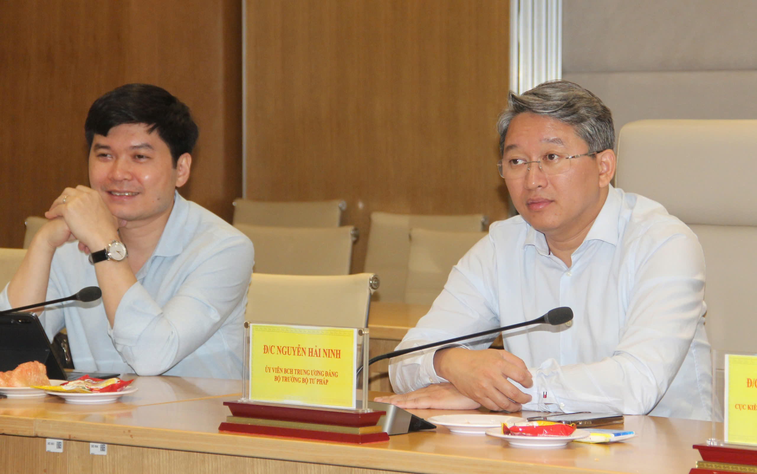 Cùng dự buổi làm việc, về phía Bộ Thông tin và Truyền thông có Thứ trưởng Phạm Đức Long, lãnh đạo Cục Chuyển đổi số quốc gia, Công ty Tư vấn công nghệ CMC; về phía Bộ Tư pháp có Cục trưởng Cục Công nghệ thông tin và lãnh đạo Cục Kiểm tra văn bản quy phạm pháp luật.