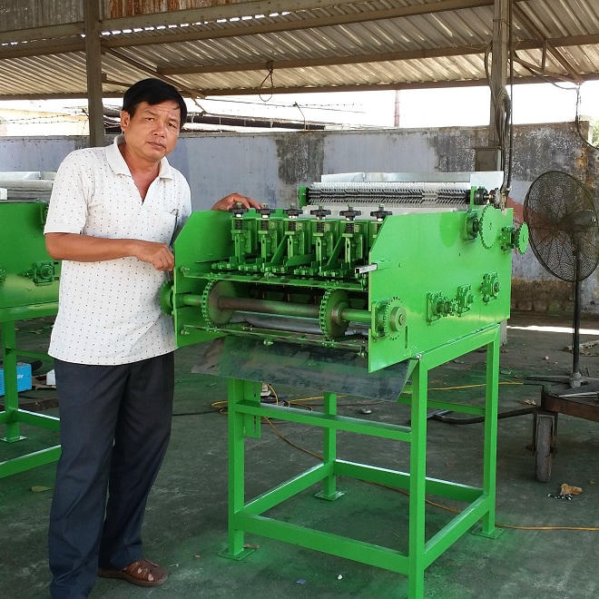 Ông Thạnh cho biết: “Kết cấu và hoạt động của máy rất đơn giản. Hạt điều sau khi hấp, chao được cho vào phễu từng máy, và cho rớt tuần tự xuống mâm có nối với nhiều rãnh. Nhờ hệ thống rung, hạt tuần tự đi vào các rãnh.