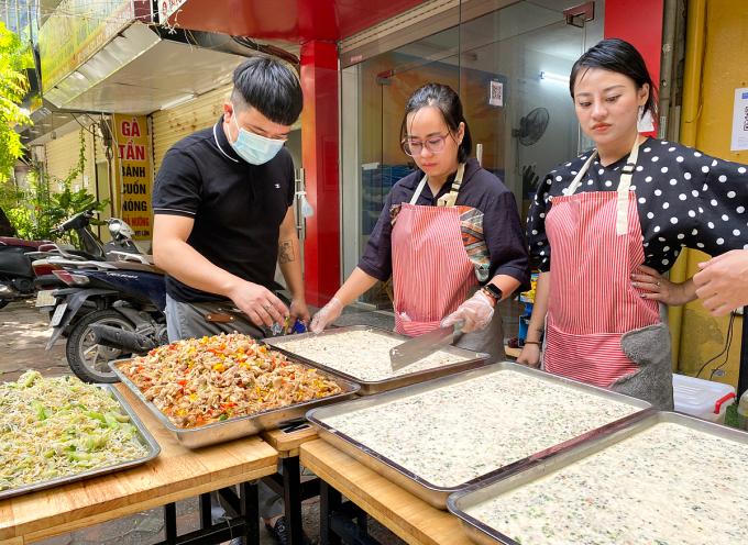 "Nay chốt 102 suất đến bệnh viện Nhi", anh Kiên hô lớn. Cả nhóm bắt đầu làm việc từ 6h30 sáng, cố gắng 10h30 đóng hộp để gửi đến các bệnh viện.