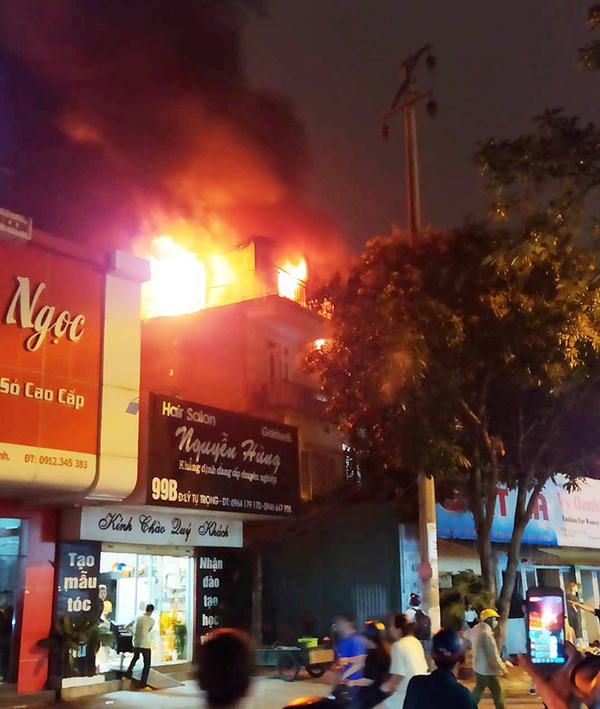 Theo người dân ở gần ngôi nhà số 99 đường Lý Tự Trọng cho biết, họ phát hiện ngọn lửa từ tầng 3 của tiệm giặt là Thủy Bảo vào lúc 19h30 phút tối 21/3, chỉ ít phút sau đó lửa cháy dữ dội. Người dân hô hào tìm cách dập tắt đám cháy tuy nhiên ngọn lửa bốc cháy quá cao đã phải trình báo lực lượng chức năng hỗ trợ.