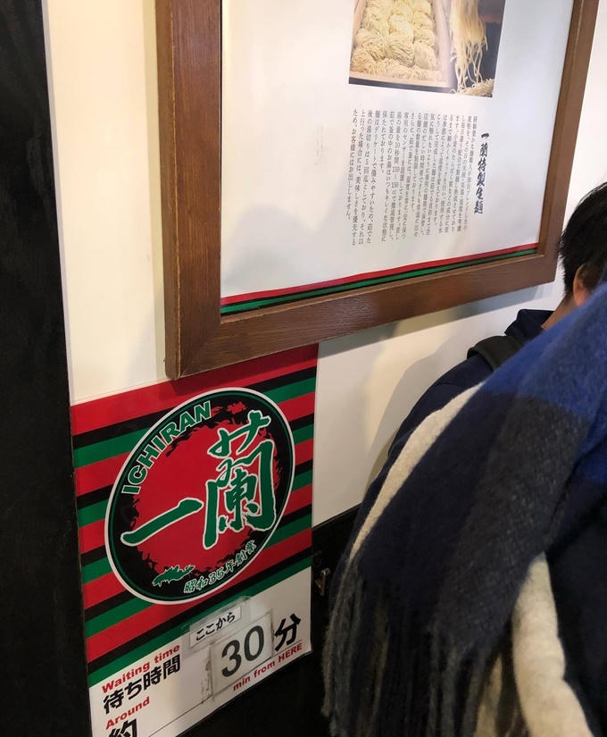 Ichiran là chuỗi nhà hàng mì ramen rất nổi tiếng ở Nhật, đến nỗi có nhiều trang báo hay các blogger bầu chọn là mì ramen ngon nhất thế giới. Mỗi ngày, hàng trăm người không ngại xếp hàng dài chờ cả tiếng đồng hồ trước tiệm để được thưởng thức món ăn trứ danh này. Trong ảnh là cửa hàng ở Dotonbori, Osaka