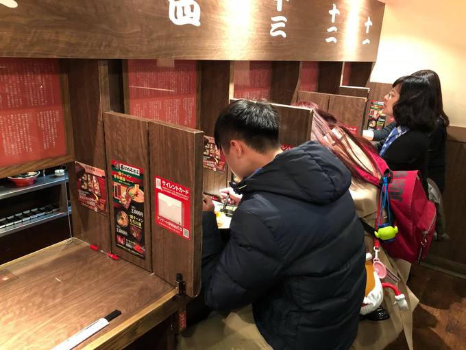 Ichiran muốn thực khách chỉ để tâm vào món ăn nên mỗi bàn ăn đều có vách ngăn để khách không trò chuyện. Sau khi mì đưa lên, nhân viên hạ tấm mành tre xuống tạo không gian tách biệt. Ly và nước uống có sẵn bên cạnh. Bàn ăn dành cho một người, vô tình lại là nơi lý tưởng của những người cô đơn.