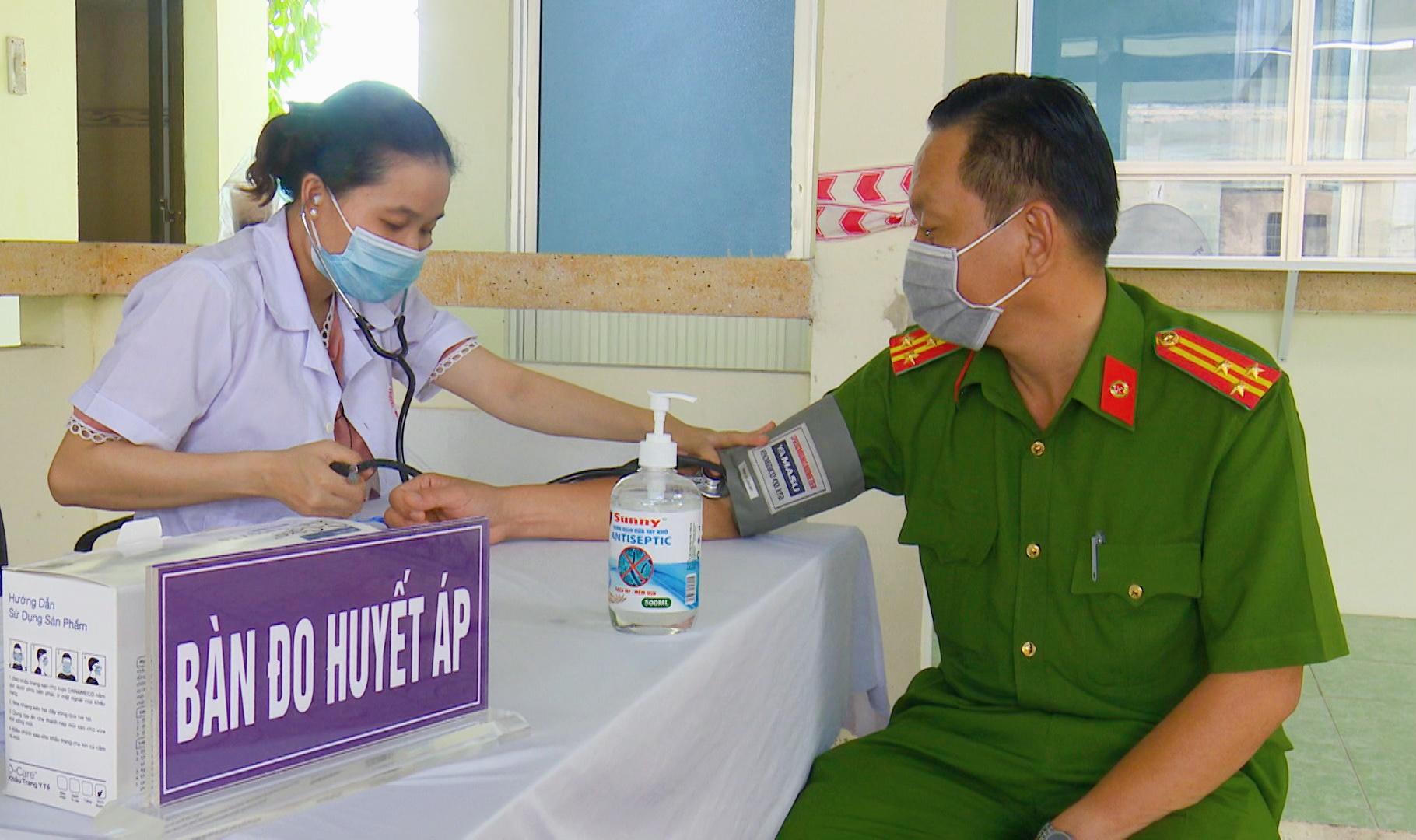 Trước khi tiêm vaccine, cán bộ, chiến sĩ Công an tỉnh được đội ngũ y bác sĩ Bệnh xá Công an tỉnh hướng dẫn khai thông tin, kiểm tra huyết áp, nhịp tim, khám sàng lọc… để đảm bảo sức khỏe tốt nhất đủ điều kiện tiêm vaccine ngừa COVID-19 theo quy định của ngành Y tế.