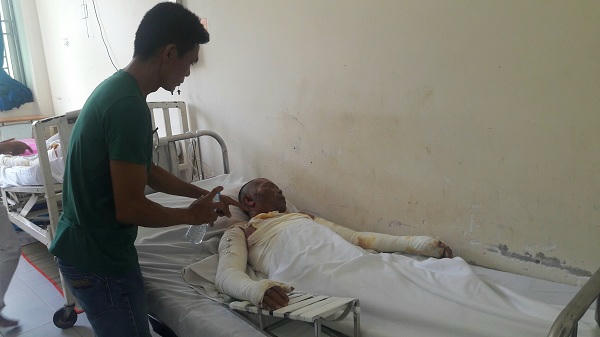Bị bỏng nhẹ hơn vợ, Tâm đang được nằm điều trị tại phòng 4, khoa bỏng. Nằm trên giường bệnh, người chồng vẫn chưa thể tiếp xúc và nói chuyện với người khác, nạn nhân bị bỏng phần trên của cơ thể, nặng nhất là vùng đầu. Luôn túc trực bên giường bệnh, người anh trai của nạn nhân chạy đôn chạy đáo lo chăm sóc cho người em dại dột.