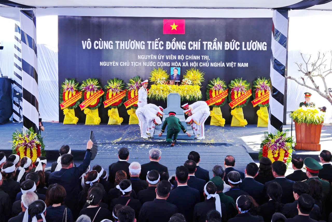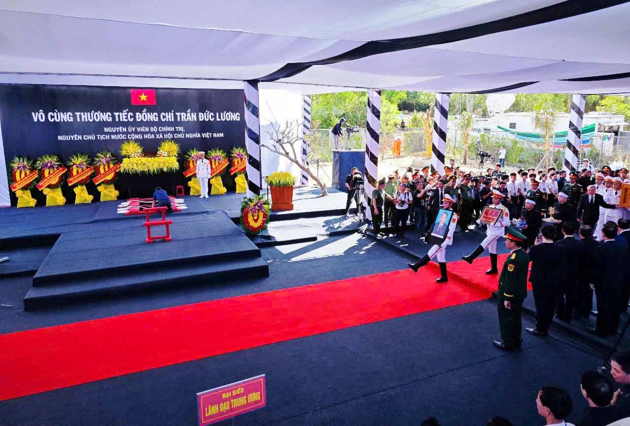 Lễ an táng nguyên Chủ tịch nước Trần Đức Lương được cử hành tại nghĩa trang gia tộc tại chân núi Dông Bồ (thôn Diên Trường, xã Phổ Khánh).