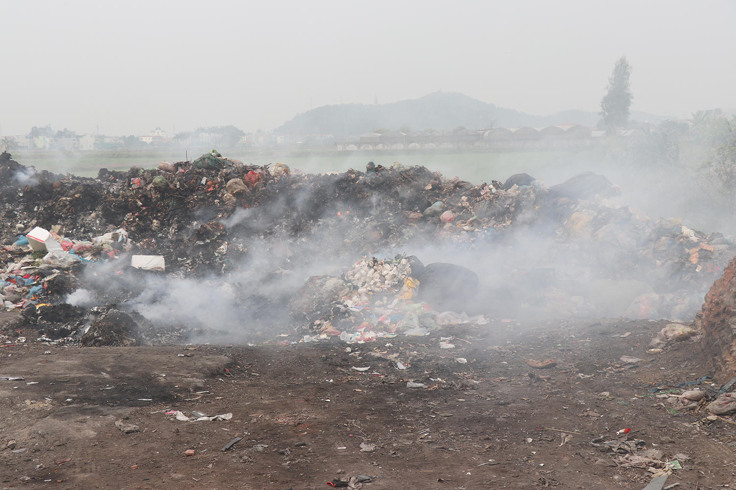 Xử lý rác thải bằng cách đốt thủ công, gây ảnh hưởng nghiêm trọng đến môi trường và đời sống người dân.