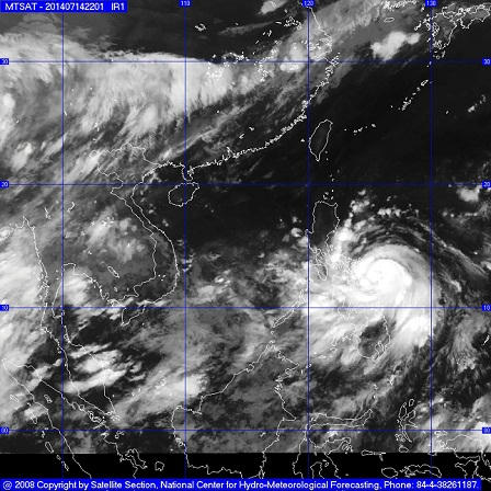 Theo Trung tâm khí tượng thủy văn TW cho biết, vào hồi 13 giờ ngày 15/7, vị trí tâm bão Rammasun ở vào khoảng 12,9 độ Vĩ Bắc; 124,7 độ Kinh Đông, trên bờ biển phía Đông miền Trung Philippin. Sức gió mạnh nhất ở vùng gần tâm bão mạnh cấp 13 (tức là từ 134 đến 149 km một giờ), giật cấp 15, cấp 16.