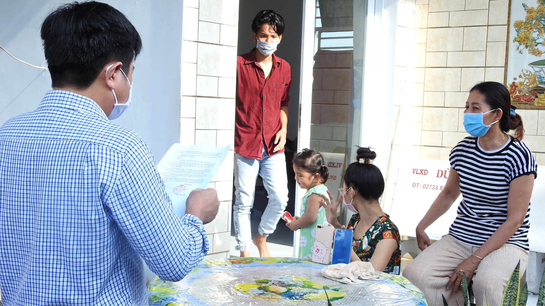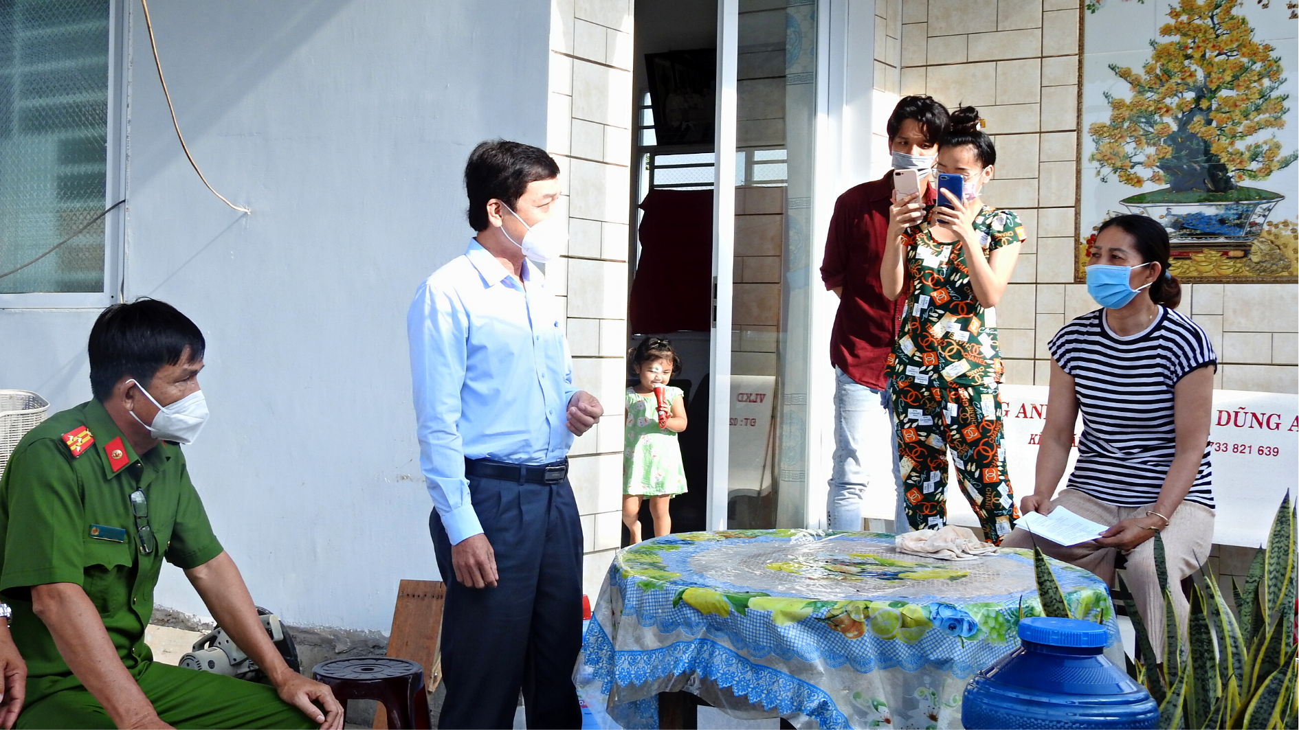 Ông Lê Văn Ý – Phó Chủ tịch UBND huyện Cái Bè vận động gia đình ông Thanh di dời (Ảnh: Lê Lập) |