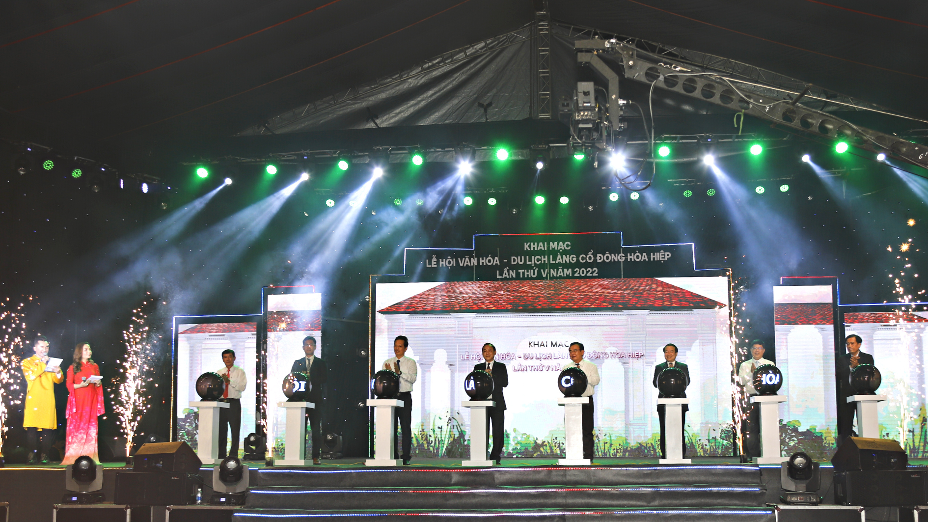 Tại buổi lễ, đại diện lãnh đạo đã thực hiện nghi thức khai mạc Lễ hội Văn hóa - Du lịch làng cổ Đông Hòa Hiệp lần thứ V, năm 2022.
