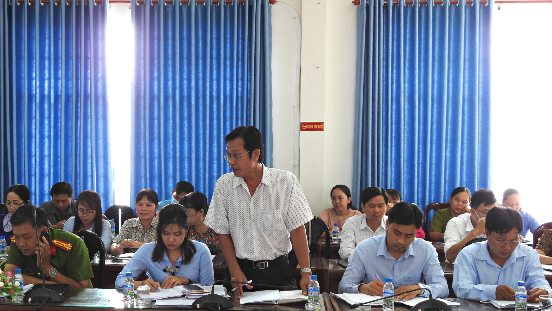 Thành viên tham gia đoàn kiểm tra phát biểu ý kiến đóng góp tại huyện Cái Bè |
