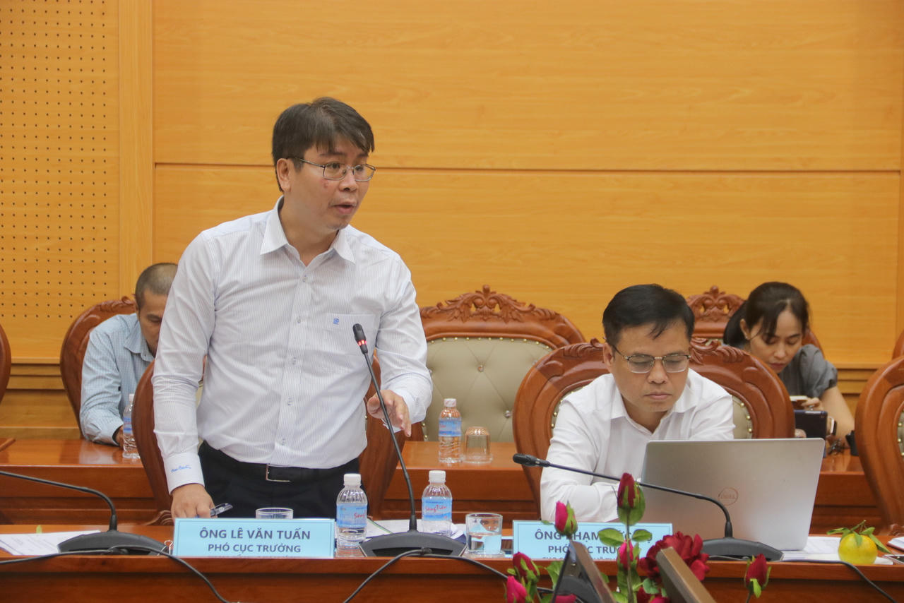 Ông Lê Văn Tuấn - Phó Cục trưởng Cục Bổ trợ Tư pháp (Bộ Tư pháp) trao đổi thông tin với địa phương |