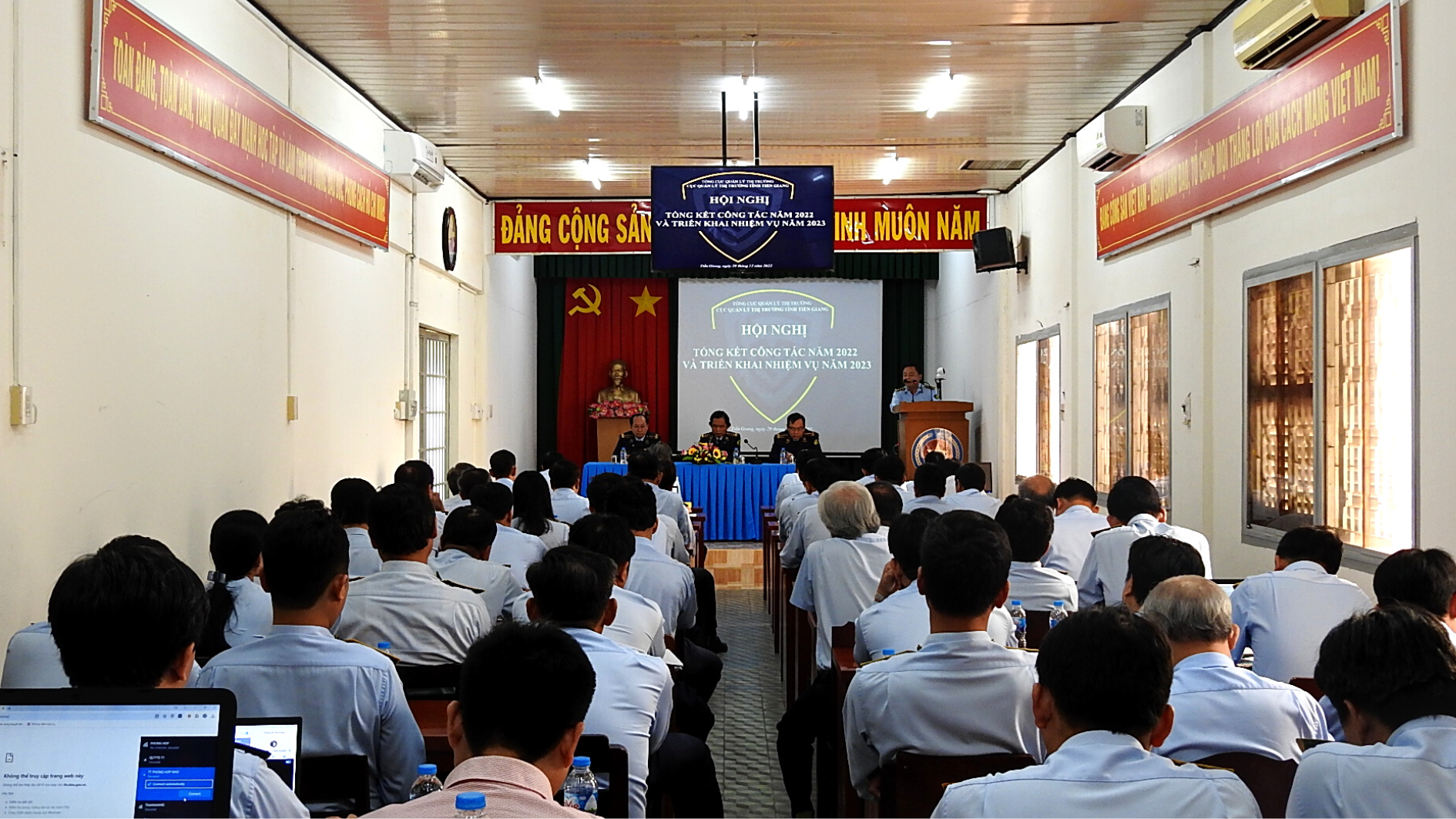 Toàn cảnh hội nghị tổng kết công tác năm 2022, triển khai nhiệm vụ năm 2023 của Cục QLTT tỉnh Tiền Giang |
